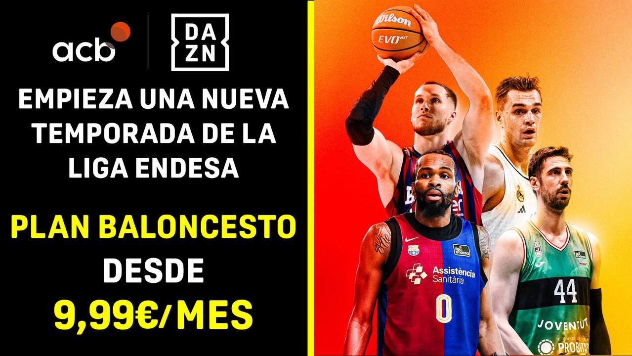 La acb al completo se ve exclusivamente en DAZN, dentro de los planes Baloncesto y Premium desde 9,99€/mes, disponibles únicamente en DAZN.com.
